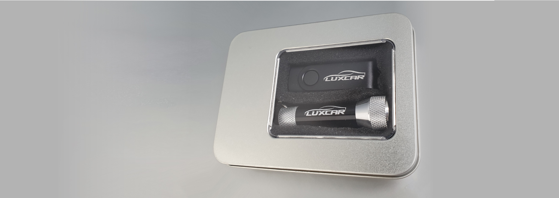 Our Custom made Gift set is simple in design, but very striking for corporate gifting. This set is made up of our most cost effective and popular usb model, accompanied with a 5 Led Torch and keyring. With your client’s logo branded onto the metal clip of the flash drive and black body of the Torch, it makes it very eye-catching.
